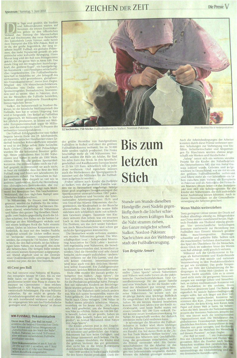Presse (Spectrum), Bis zum letzten Stich, Seite V, 5. 6. 2010 |
