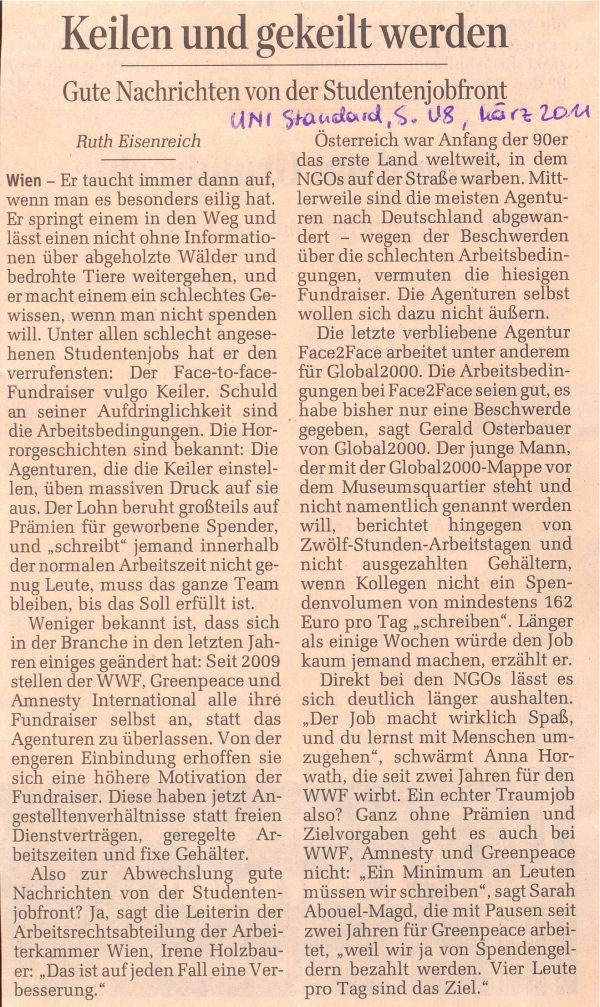 Wunsch nach Ausgleich" in der u. a. Ausgabe von Der Standard.