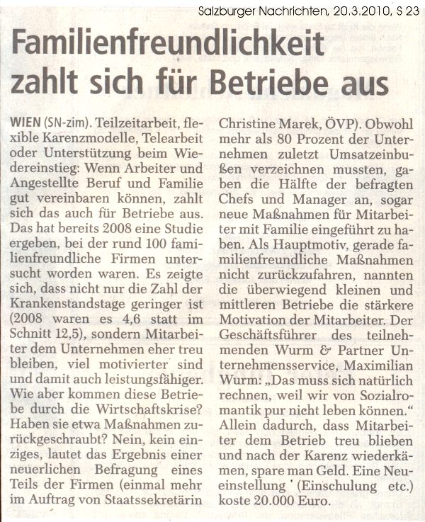 im Auftrag von Staatssekretärin Christine Marek: Familienfreundlichkeit